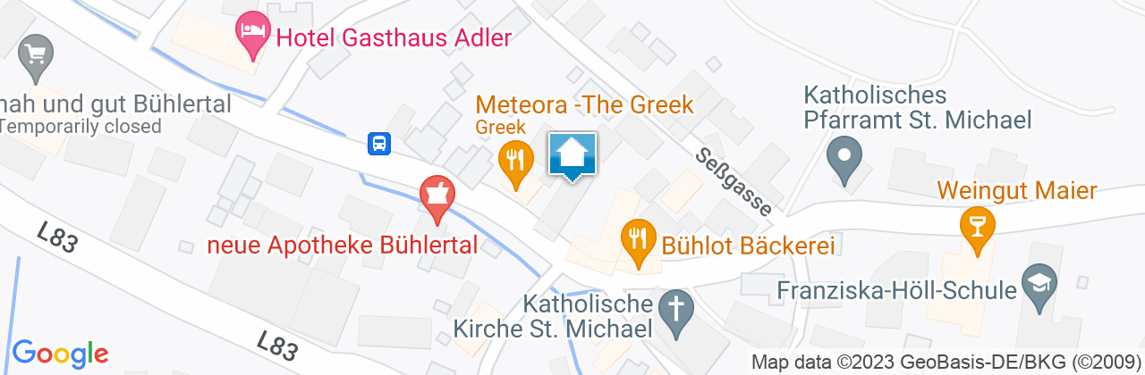 ...bei Sand auf die L83 Richtung Bühlertal fahren. Durch Bühlertal geradeaus hindurch bis zur Firma Bosch im Untertal. Dort dann rechts auf die Klotzbergstraße und nach ca. 50 Meter nach links auf die Hauptstraße. Nach 200 Meter direkt gegenüber der Kreuzung liegt der Gasthof Engel.