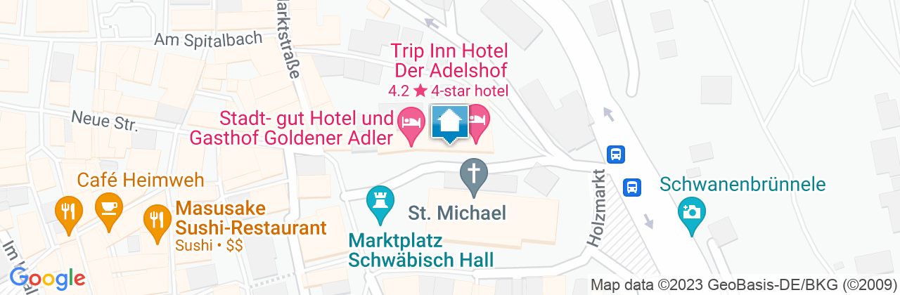 Hotel Der Adelshof - Ihr Hotel in Schwäbisch Hall Schwäbisch Hall - Kultur und Geschichte zum Anfassen! Schwäbisch Hall ist die Wirtschaftsregion der Weltmarkfuehrer und gleichzeitig ein angesagten touristisches Reiseziel, nicht nur für Kulturinteressierte. Das TripInn Hotel Der Adelshof is am Marktplatz der Mittelpunkt einer modernen Stadt mit mittelalterlichem Flair. Wo einst sogar Kaiser Karl V. logierte, weht heute frischer Wind in historischem Gemäuer. Zimmer, so einzigartig wie unsere Gäste. Jedes ein Juwel und Geschichtenerzähler. Unsere Zimmer atmen Geschichte und beherberen gerne moderne Gäste. Das Frühstück ist das Beste in der Stadt. Für Veranstaltungen machen wir den Tanz in allen Sälen mögich und Tagungen werden hier zur success story. Auf Geschäftsreise, auf der Burgenstrasse unterwegs oder zu den Freilichtspielen - seien Sie uns auf das Herzlichste willkommen.
